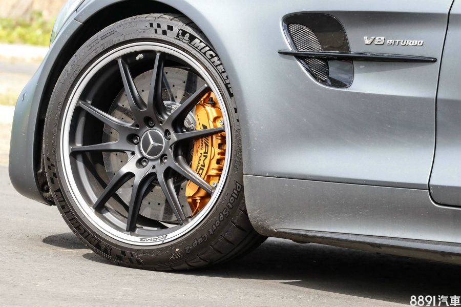 GT R標配鍛造鋁圈,不過這輛選配更輕的款式,須加價10.8萬才能擁有,輪胎規格則是前275/35R19、後325/30R20,比其他AMG GT的前265/35R19、後305/30R20都寬了一點,並採用米其林Pilot Sport Cup 2有紋熱熔胎。