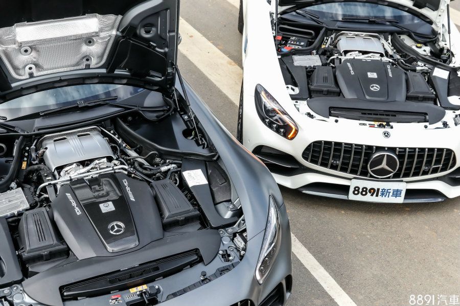 AMG GT車系均搭載4.0升V8引擎,GT C動力從GT S的522hp/68.3kgm提升為557hp/69.3kgm,但引擎經過一些強化修改,壓縮比從10.5降為9.5,渦輪也經過修改優化,增壓值則從1.1bar提升為1.25bar,而GT R再將增壓值提升為1.35bar,讓最大輸出達到585hp/71.4kgm。