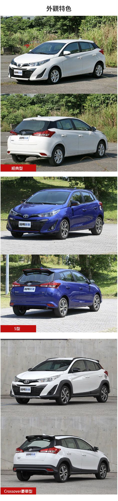 小改款Yaris車系多達6車型選擇,除了一般版,還有強調運動化氣息的S版本,今年推出的Crossover則是結合現下流行跨界元素而生的「台灣專屬車型」,之所以說台灣專屬,是因為其由和泰參與設計,並和南非市場的Yaris Crossover在造型、細節設定上有所不同,至於各版本細節、差異、配置在哪,會在後面做個詳盡的介紹與分析。