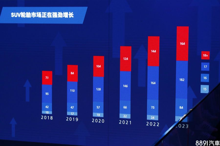 由於新車市場SUV產品持續走紅,因此SUV胎的需求也連帶增大,根據米其林統計,SUV輪胎市場需求,2018年到之後的2023年,五年間的需求會翻倍成長,這是一個相當驚人的數字!