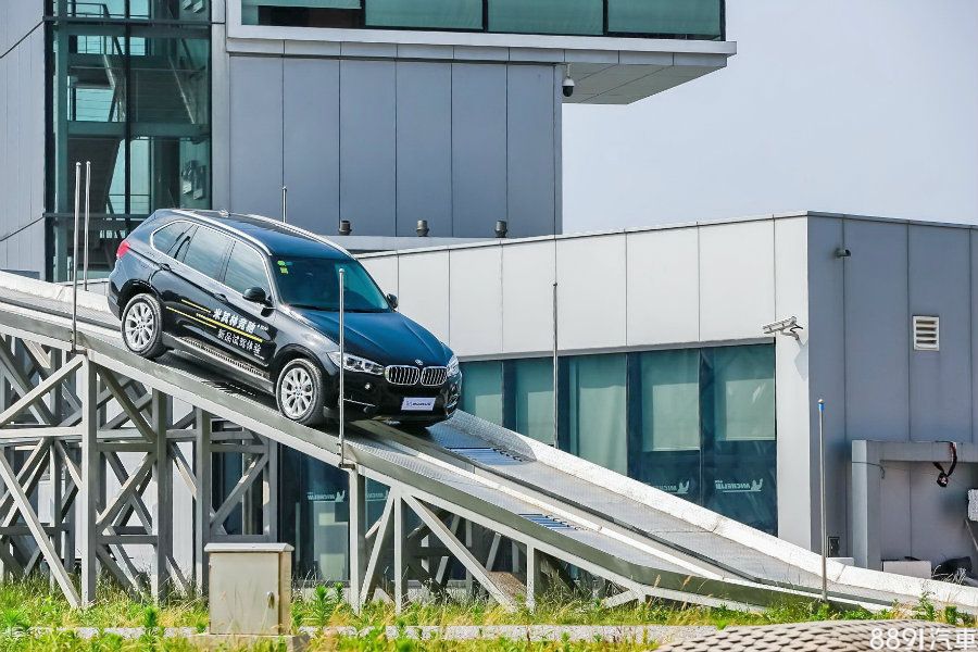 這個鐵板坡道,上方還有交錯滾輪,模擬路面摩擦力不斷變化,輪胎需要有理想的縱向抓地力,才能讓含著剎車下坡時,車輛仍可安穩緩行。