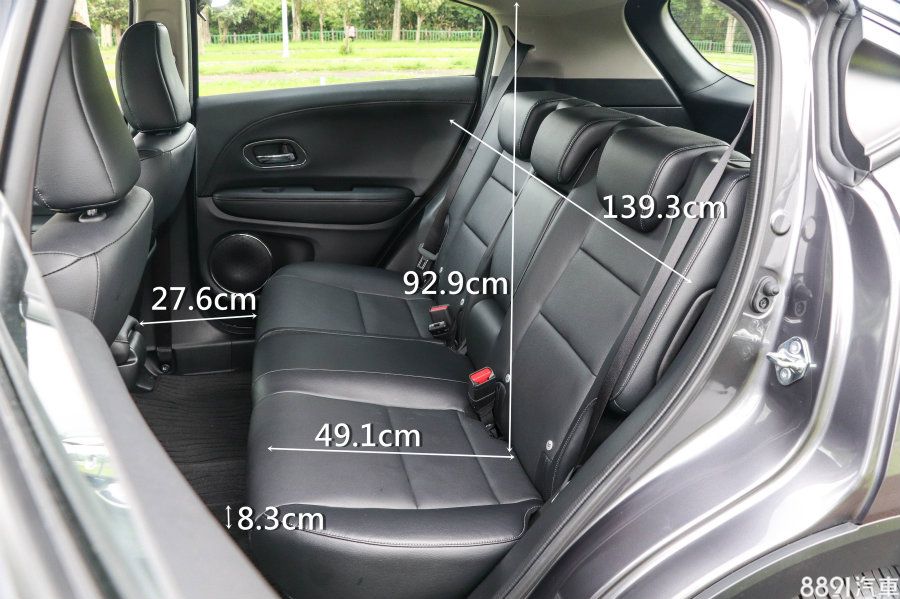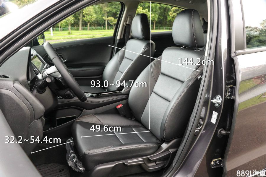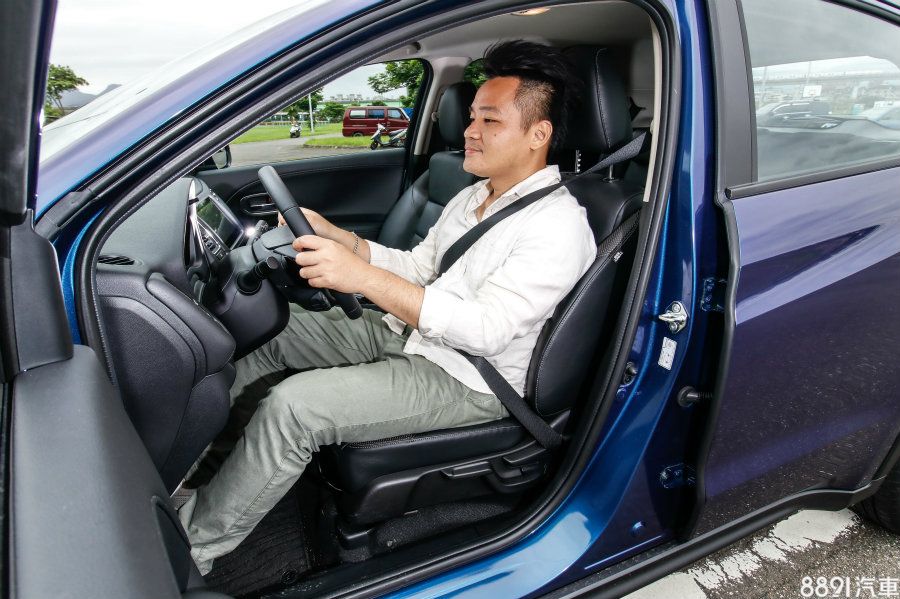 HR-V雙前座均採手動調整,配合方向盤四向可調能輕易調整到合適坐姿,座椅剪裁能服貼身體曲線,置身其中並沒有感到支撐性有不足之處。兩側腰靠造型雖然突出,座椅寬度過寬讓包覆效果降低,激烈操駕無法緊固身體。