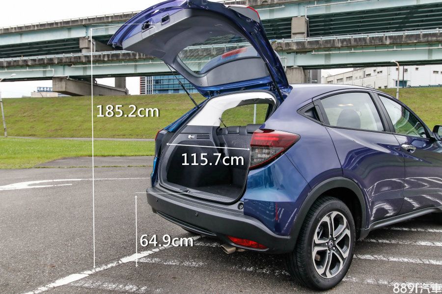 HR-V行李廂不僅空間開闊這項優點,開口面積也相當大、門檻離地高更是低矮,大型行李、重物進出都相當輕鬆,至於尾門手把雖然看似有點高,但已比Kicks稍低一點。