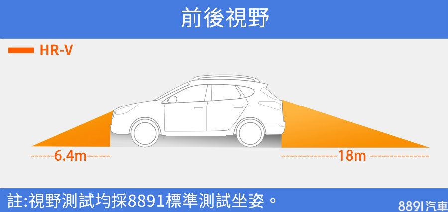 HR-V前後檔風玻璃面積並沒有特別開闊,相對前後方視野也並不突出,前方視野盲區6.4m、後方則來到18m,作為日常用車如此視野並不會對判位帶來困擾,後方則能利用倒車顯應與雷達幫助避免碰撞。