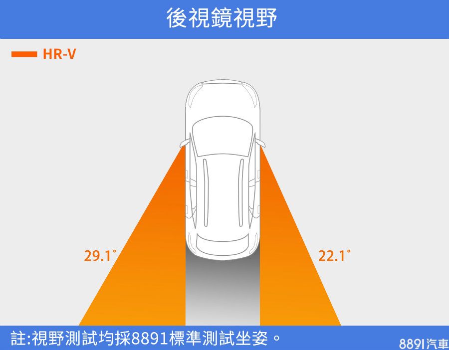 HR-V兩側後視鏡均沒有廣角設計,但受惠於鏡片面積寬大,兩側視野均不會太過狹小,觀察左右來車與車身判位都還算容易。