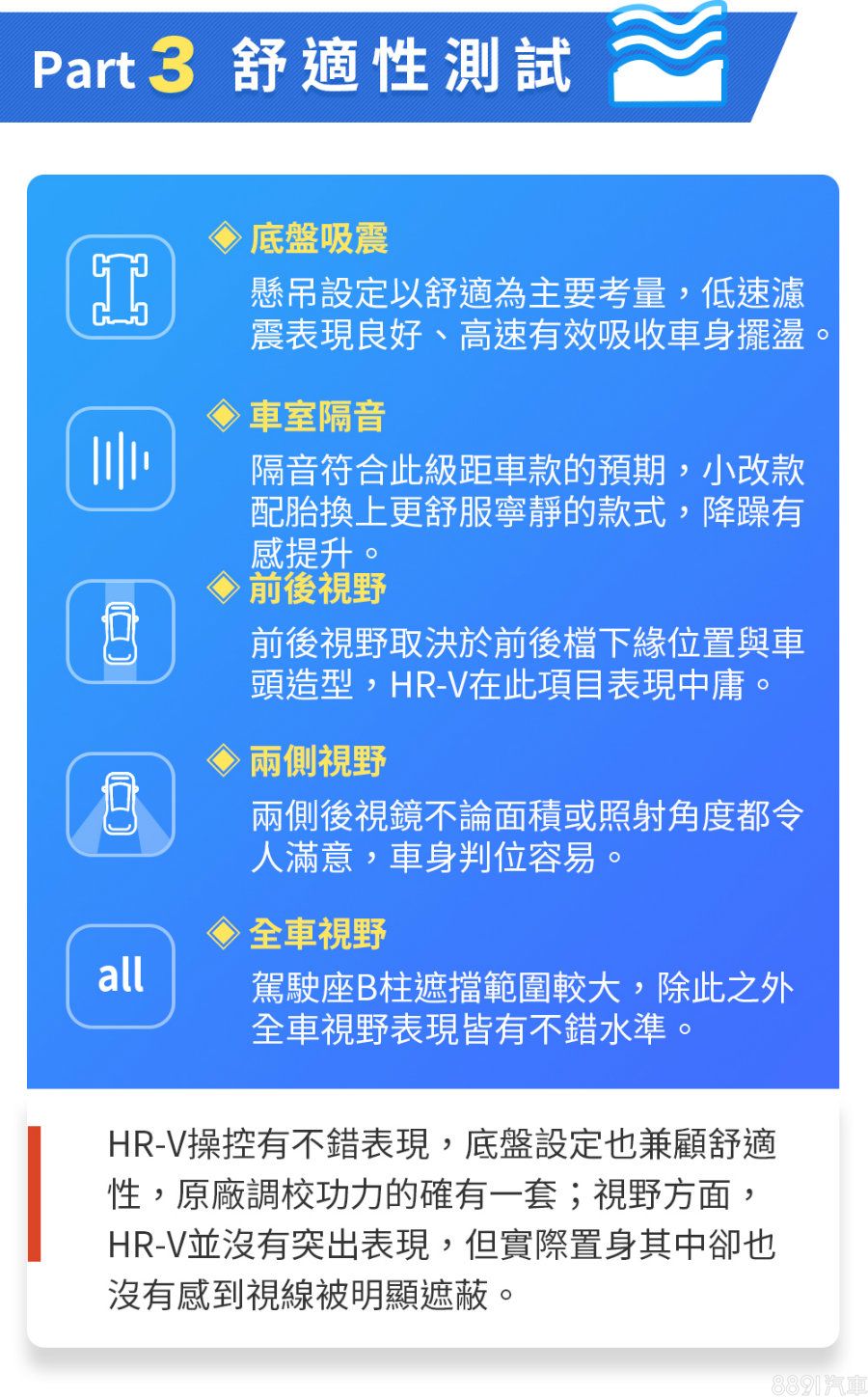 無論是車主評價,或是這次超級測試的結果,HR-V的動力、操控表現無須質疑,油耗表現也理想,更別說完勝同級的空間表現,我們將先前Kicks超級測試數據做比對,領先幅度相當清楚,也難怪HR-V小改款變動細微,因為面對新世代對手,戰力仍強!