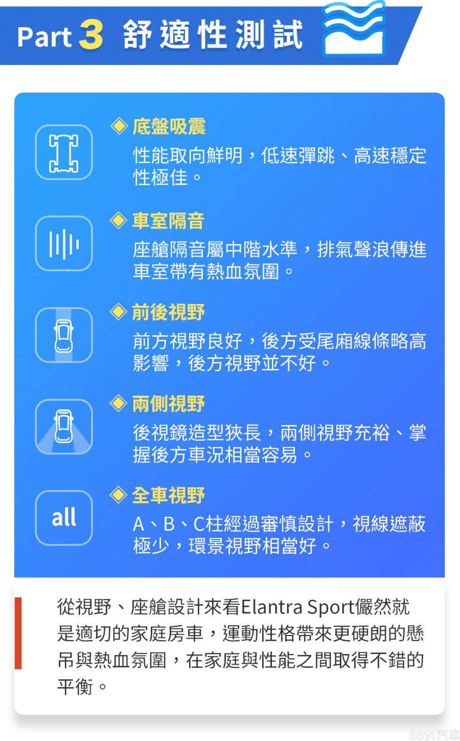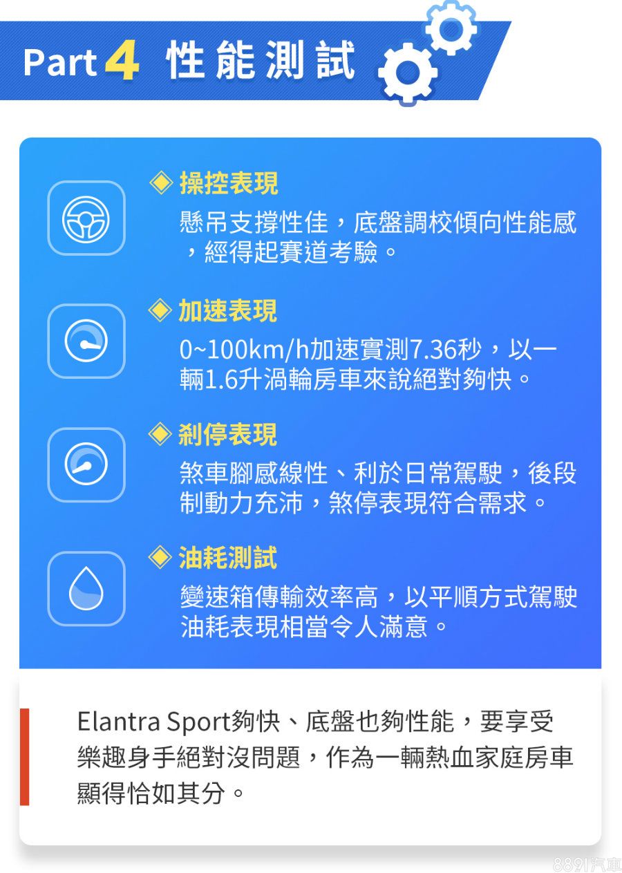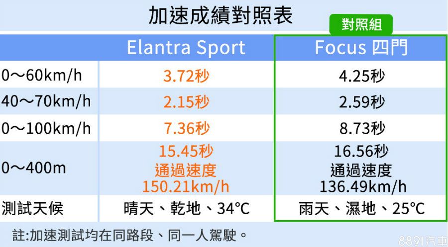 這次Elantra改款,超級測試重新檢視一次Elantra Sport產品力,在性能面,操控、加速實測數據都是同級出色等級,開著Elantra Sport出門跟同級相約山道拚高下,贏面很大的!若是說務實面,空間、舒適性、視野表現也都挑不出明顯瑕疵,數據證明了Elantra Sport產品實力,好了,超級測試已將車輛表現用科學方式轉換成數據給你了,剩下的,就只能你自己去體驗了!
