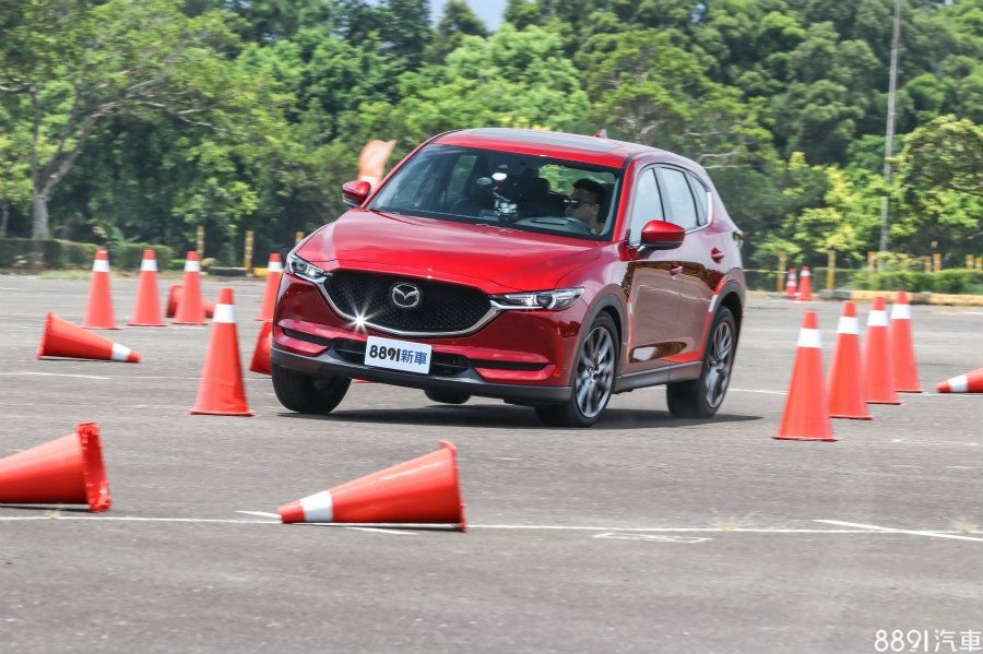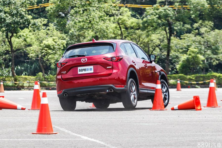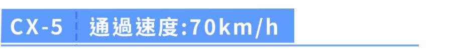 CX-5以70km/h挑戰,雖然車身側傾明顯,但反應仍算穩定受控,不過一旦車速再往上提升,在第二次變道時,就會有車身重心來不及轉換、無法順利進入第三段車道,進而撞倒錐桶,或是直接衝出路線的情形。