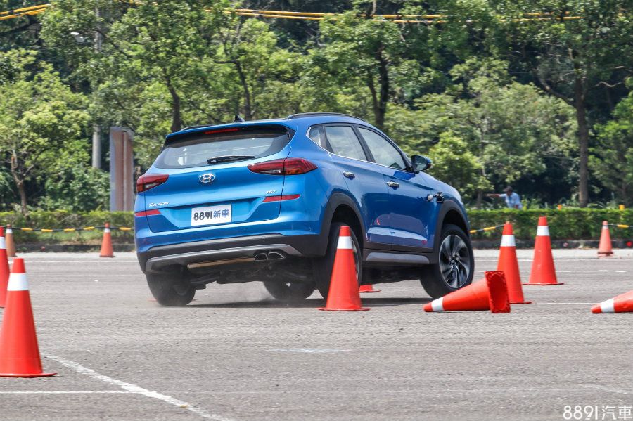 雖然Tucson車身側傾不算輕微,但整體動態流暢,幾乎沒有突兀的搖擺晃動,同時動態穩定系統讓人印象深刻,作動過程順暢,少了突兀的感受,也等於讓駕駛人避免額外驚慌的可能性。最後以73km/h完成測試,若加快到75km/h,第一個閃避點有車頭切換不及的情形。