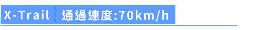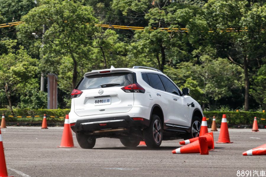 X-Trail在65km/h通過時,動態穩定系統發揮功用,明顯介入,讓X-Trail車速驟降,而當車速提升到70km/h,在進入第二車道時,車尾可看出有偏滑情形,當再略提升到72km/h,車尾偏擺幅度加大,掃倒錐桶而失敗。