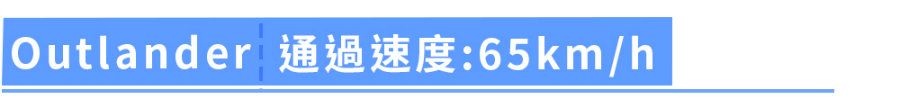 大家可以在影片中看到,Outlander在65km/h進入第二車道時有些偏移,但仍順利過彎,但當車速加快到70km/h,車身偏滑更多,動態穩定系統無將車輛拉回既定路線,直接碰觸錐桶,且三趟測試均是如此,成為此回通過速度最低者。