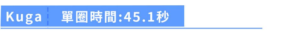 Kuga擁有全場最大的245hp/38.0kgm出力,也具備四驅系統,因此不怕大動力在出彎時,讓驅動輪產生空轉,其實頗有冠軍相,但配胎Goodyear Assurance Fuel Max抓地力並不出色,在大動力驅策下,懸吊應付劇烈加減速的G力變化也有些吃力,變速箱雖具備換檔撥片,但電腦給予的檔位控制自主性並不高,這些都淡化了動力優勢,最後跑出45.1秒中等成績。