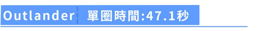 Outlander成績是47.1秒,位居後段班,雖然成績不出色,但平心而論,開起來的感受算是均衡協調,油門反應靈活,CVT變速箱也能提供良好的轉速變化,油門到底時,轉速隨即攀升,剎車減速時,也能維持一定轉速帶來牽引力,輪胎抓地力雖沒到優秀等級,但也沒不堪,而真正無法讓成績向前推進的,是車輛可承受的極限較低,這跟世代科技性有關,只能等待下一世代的Outlander能有所突破了!