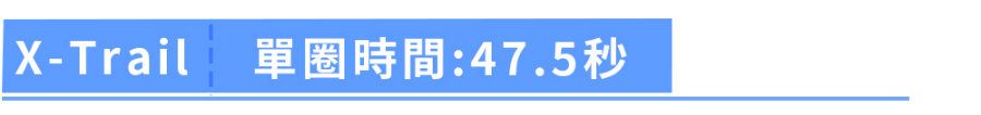 X-Trail 2.5也具備四驅系統,但是同場唯一擁有2WD、Auto、Lock模式選擇,我們以Auto模式挑戰單圈;X-Trail懸吊趨向軟調,必須更細膩控制車身動態,才能避免過多的晃動影響車輛表現,而變速箱與CVT變速箱的搭配性還算理想,沒有反應慢半拍的情形,但169.4hp/23.6kgm出力一般,不具有優勢,另外,剎車輔助力道會視車速、動態不斷改變,且變化明顯,雖然立意是提升行車安全,這反而會影響挑戰單圈的順暢度,最後以47.5秒與Forester並列末位。