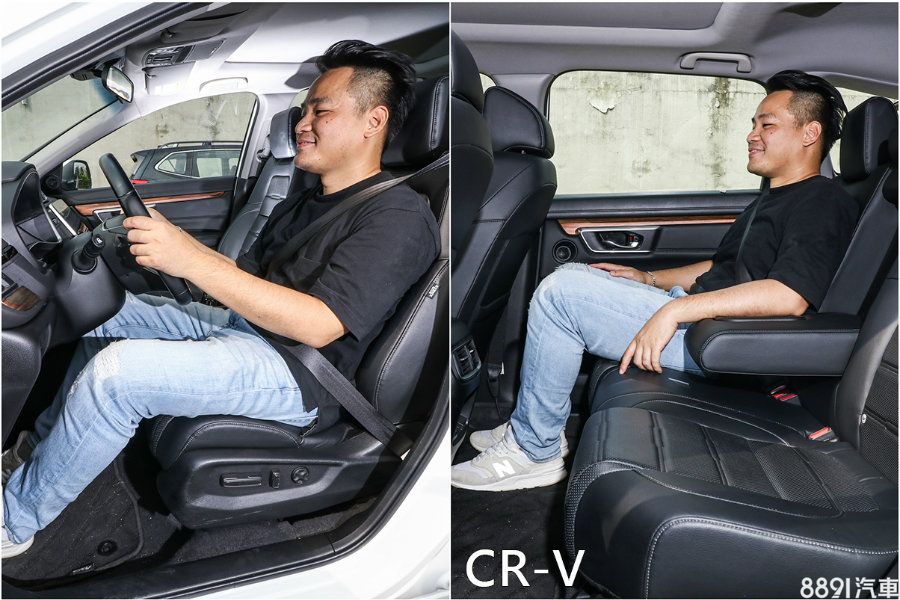 頂規CR-V標配電調駕駛座,泡棉軟硬度和腰側包覆性理想,雖然不是真皮包覆,但椅面具備孔洞與溝槽設計,除了有止滑效果,夏天時,也能夠降低腰部與臀部的悶熱感。後座因開闊的空間大幅提升舒適感,接近完全平坦的地板讓中央乘客也成坐得放鬆,幾乎沒什麼能挑剔。