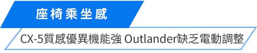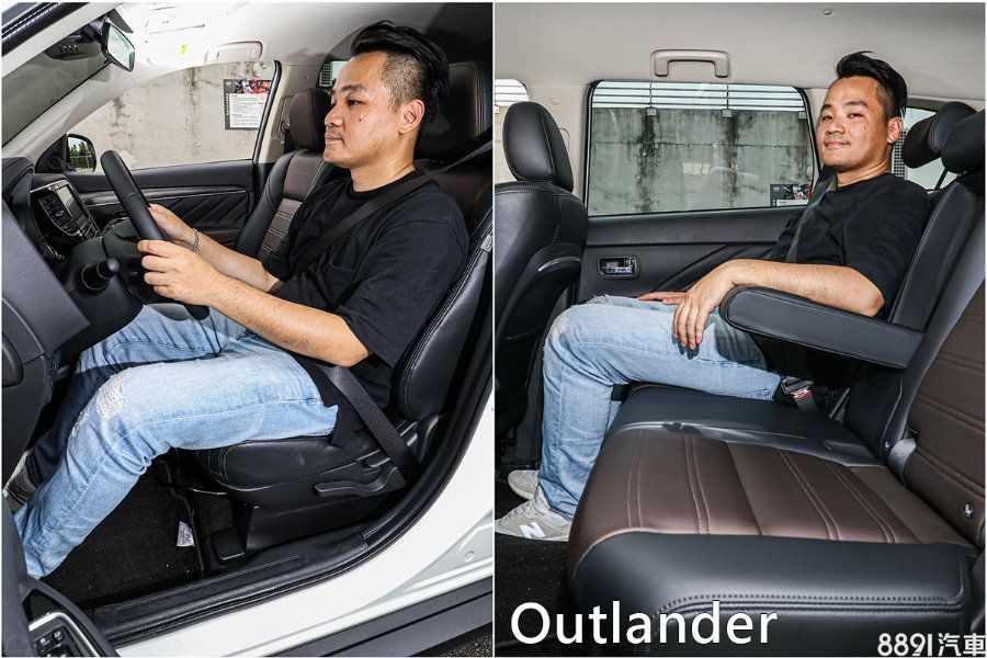 Outlander座椅內部泡棉設定相當理想,久坐並不會感到疲累,兩側腰部包覆性稍嫌不足,如造型一般擁有如沙發的乘坐感;後座空間方正且充足,泡棉設定同樣理想,大腿支撐性足夠,只不過膝部空間在第三排有乘客的情況下需要多多擔待,善用前後滑移調整縱向空間。