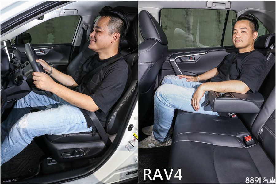 RAV4前座剪裁貼身,皮質觸感也相當柔軟,令乘坐感受有一定的水準,不過兩側腰部包覆性稍弱,山路時得仰賴左腳協助支撐身體;後座舒適性也同樣理想,兩段式椅背調整能設定出理想乘坐姿勢,頭部空間尤其出色,帶來相當開闊的乘坐感受。