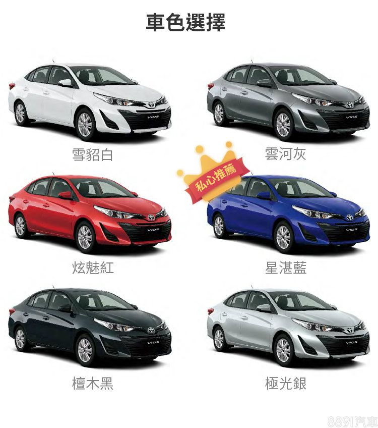 小改款Vios提供六種外觀車色供選擇,除了較為熱門的灰階色系外,為吸引年輕族群,原廠也提供炫魅紅、星湛藍兩款較為活潑的車色供選擇;其中星湛藍是小改後新增的色款,鮮明搶眼且有別於主流的個性風格,個人私心推薦!
