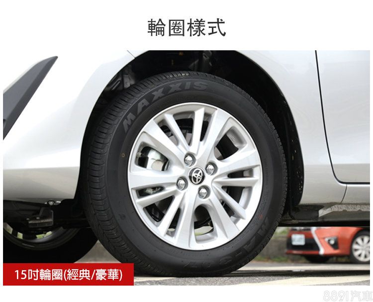 除了入門的雅緻型採14吋鐵圈搭配單色輪圈蓋外,其餘兩車型均標配V型六輻式15吋鋁圈;制動系統則全車系統一採前碟後鼓配置。全車系配胎統一選用Maxxis MA-307節能經濟胎,尺碼分別為175/65R14及185/60R15。