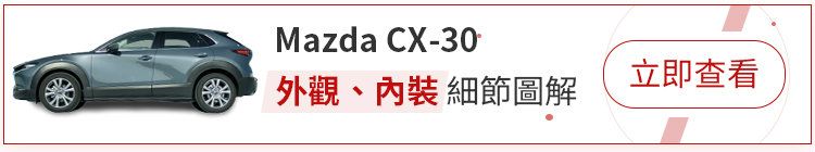 在CX-30上則可看到更多質感的呈現,像是皮質包覆的儀表台簡潔大方,中控螢幕為8.8吋的配置,也可搭配Apple CarPlay以及Android Auto使用,在質感以及操作體驗上CX-30似乎更占上風。