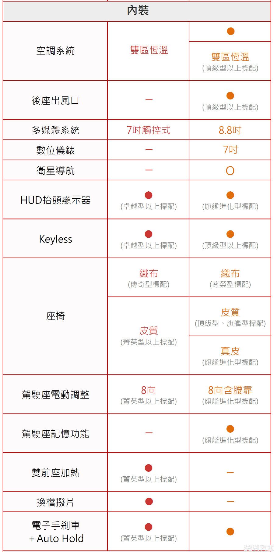 先前我們已經有介紹過兩車系的詳細配置,可以觀看買車大補帖針對不同規格究竟有哪一款的配備更為超值,這裡將會提供兩個車系的重點配備介紹,供消費者初步在車系選擇上有更好的依據。