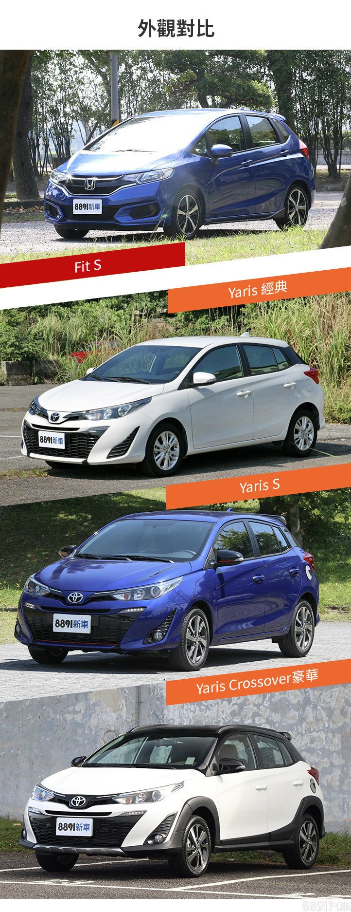 直接進行對比,可見Yaris由於下探60萬內預算型客群,在低規車型配備較為簡要,然而在高階車型上,Yaris的主要輛點配備並不會比Fit來得少。然而,或許為配合其入門定位,以現行市場風氣來看,兩車主動輔助項目均略感不足,所幸海外已發佈的大改款車型上,兩車系均會針對主動安全做強化,未來國內上市的後繼版本能否比照辦理,值得消費者投予期待。