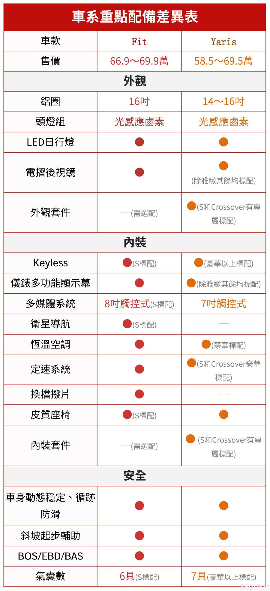 一如「買車大補帖」的一貫作風,在對兩車系有著基本認識後,我們進一步針對Fit和Yaris的重點配備差異進行比較!