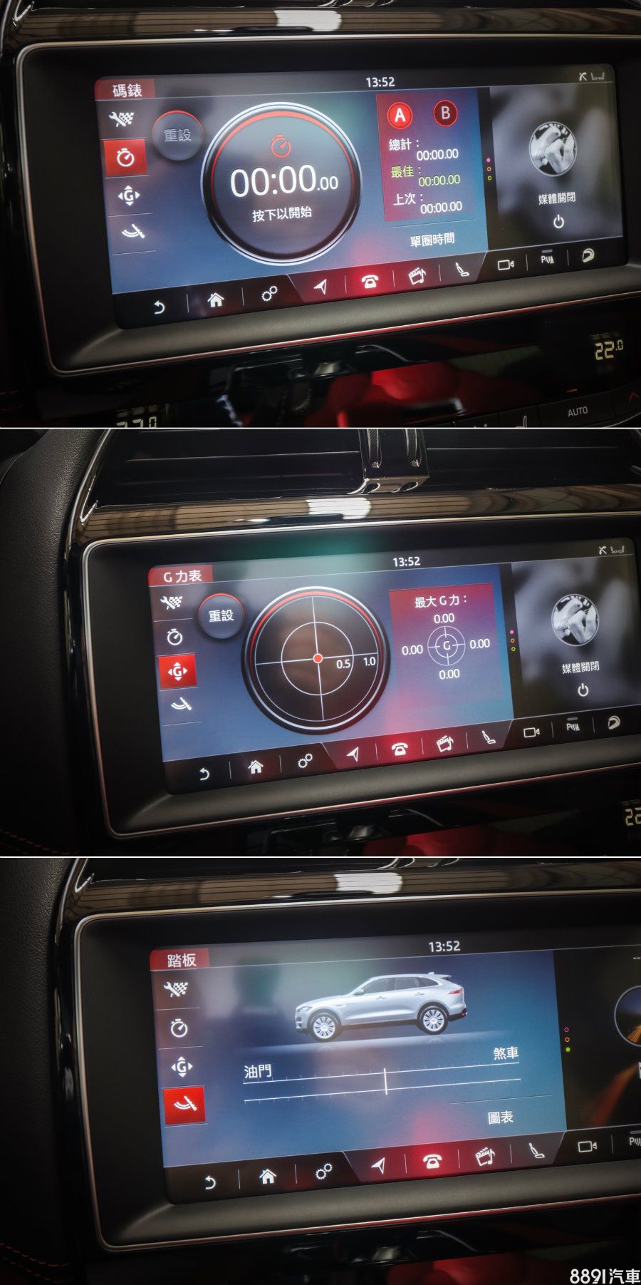 進入賽道模式之後,中控螢幕還可提供單圈計時、四向G值、剎車/油門動作紀錄,算是提供一些專業性玩味,而若能善加利用,對修正駕駛也是有一些助益。