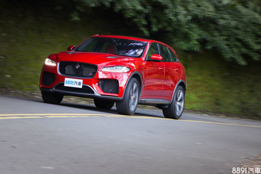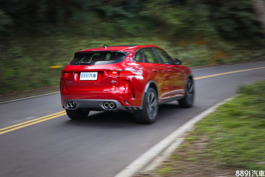 氣勢驚人的排氣聲浪,是F-Pace SVR在動力上給我們的第一印象,雖然設有排氣閥門,但差異不算大,關閉時,只有怠速和慢速行駛略為安靜,一旦大腳油門拉高轉速,都是高亢囂張、氣勢十足,催情指數頗高,且車外比車內大聲許多,這有兩個好處,一是車內熱情又保有合理的隔音,二是車外路人可以清楚知道你的車不好惹!賽道模式下,變速箱換檔時機沒有太多差異,油門靈敏度也適中,但全油門換檔,就能感受到換檔接合變快,另外懸吊也明顯變硬,這是賽道模式最有感的兩處變化。