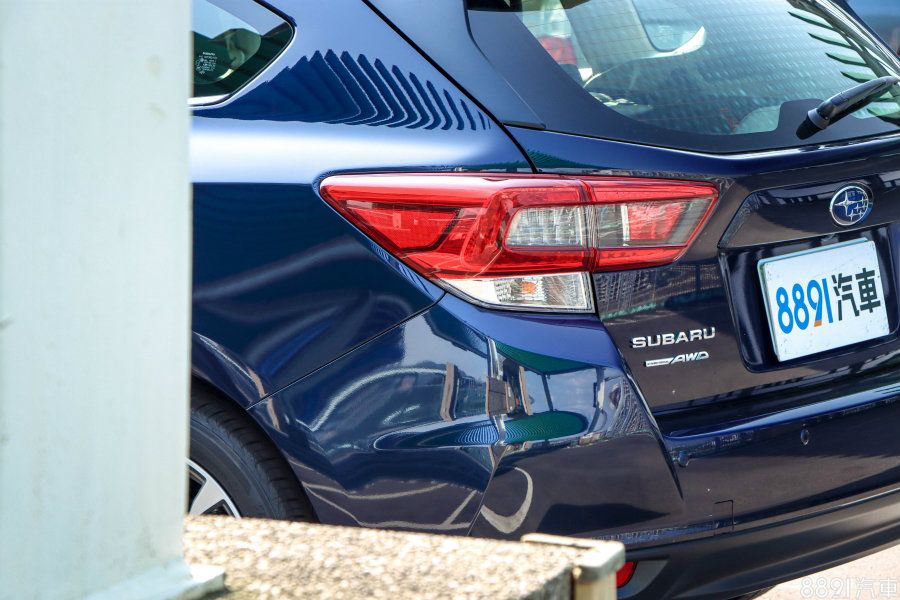 車尾變動幅度不算大,僅有尾燈改採燻黑色澤,造型沒有任何變化,煞車燈與小燈採用LED光源,其餘則是傳統燈泡。在照片中Subaru字樣下方則是此車與同級掀背車最大的不同之處,Symmetrical AWD對稱式全時四驅系統銘牌。