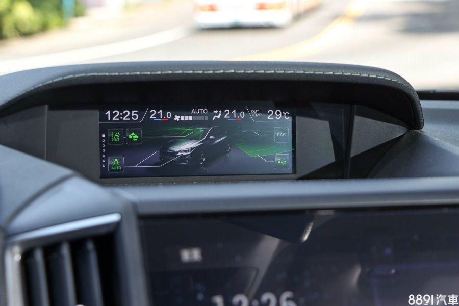 觸控主機上方設有6.3吋多功能資訊幕,這算是Subaru內裝的一大特色,可提供空調、車身水平/傾角、油水溫與油耗等多樣化資訊,各項駕駛輔助系統運作狀態也可在此顯示,畫面中的小車也會跟隨實車開啟大燈、閃爍方向燈或點亮煞車燈,算是一個有趣的小細節。