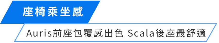 Scala後座坐姿在四車中最自然舒適,主要在於椅面角度適中,椅面也夠高且平直,可完整支撐大腿,空間開闊感也是最優,唯一的缺點就是中央隆起高,中間坐人較不方便。