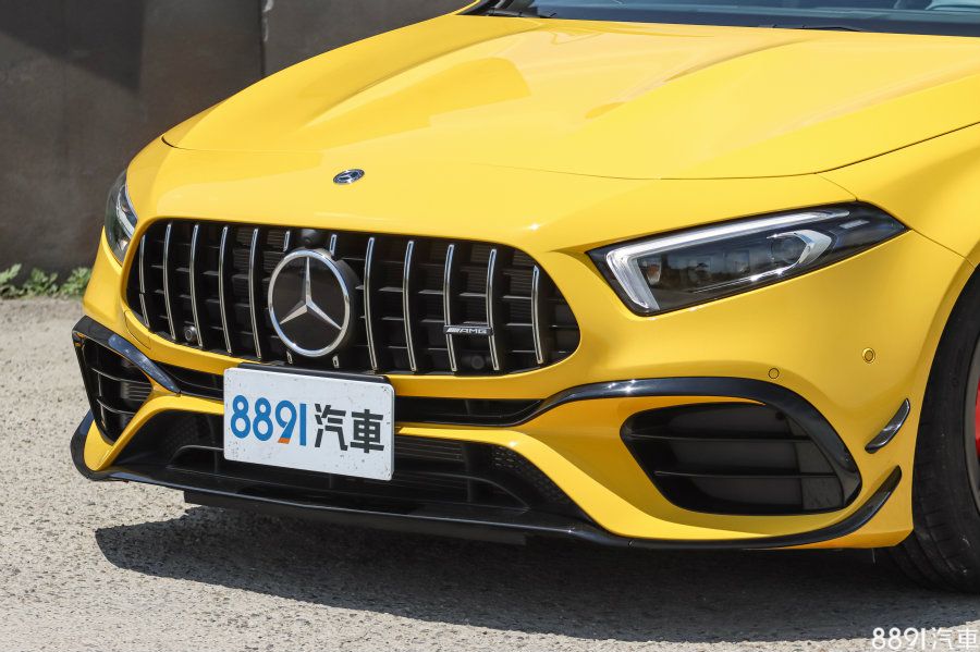 A 45 S與35最大的差異除水箱罩改為直柵式外,為了配合AMG性能一軍性能需求,前葉子板也多出寬體設計,光是基本身形就比A35更低趴兇悍,搭陽光黃車色,以及黑色空力套件細節,囂張氣焰反映出「市售最強鋼砲」的地位。
