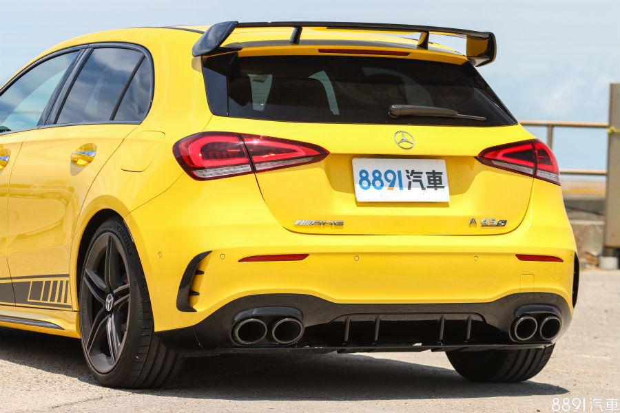 大型分流器一樣是AMG空力套件內容;A 45 S排氣管採雙邊雙出設計,比起35的雙邊單出看來更加兇猛,同樣具備根據引擎轉速或行車模式開啟的閥門系統,雖然同為2.0升四缸渦輪引擎,但排氣聲浪比35更嘹亮一些。