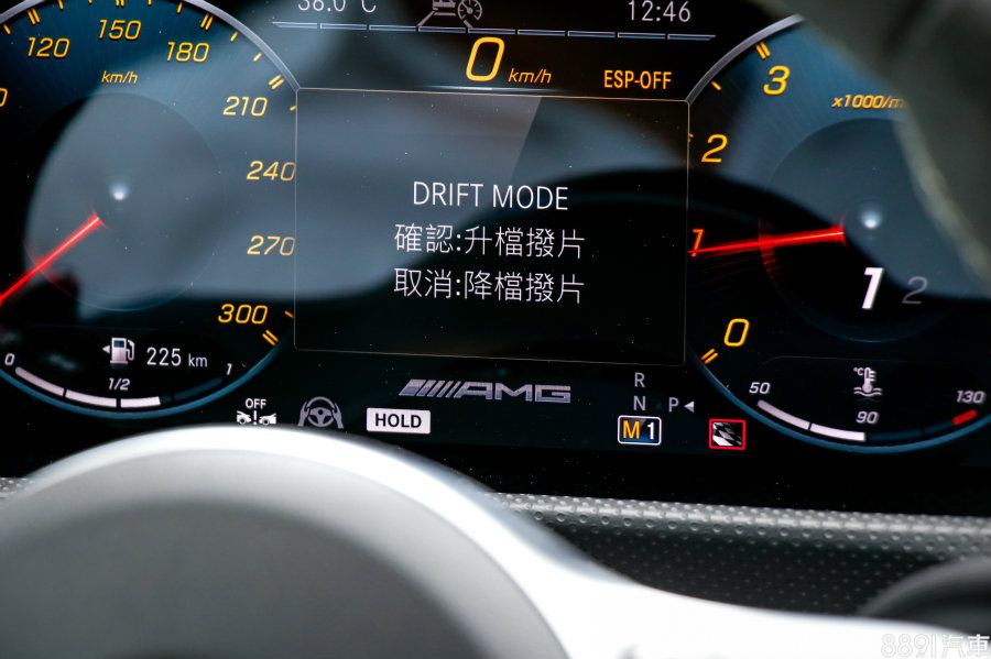 進入甩尾模式的第一個動作要先關掉ESP,行車模式必須切換至Race,搭配M手排換檔模式,接著同時扣緊換檔撥片,當儀錶出現「Drift mode」就代表你已啟動此功能,讓四驅配置的A 45 S也能像後驅車般飄移!