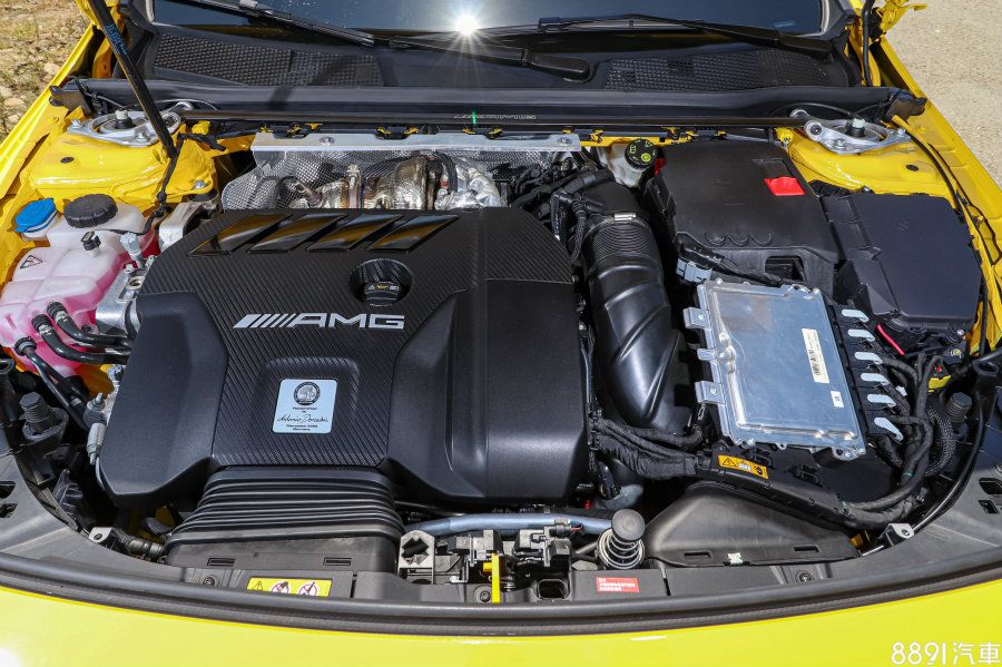 動力是A 45 S一大賣點,2.0升四缸渦輪引擎維持單員手工組裝的生產方式,和其他賓士四缸引擎的方向相反,排氣端位於後方,造就更短截的進氣路徑,配合大尺碼的單具渦輪(最大增壓值2.1bar),擁有421hp/6750rpm、51.0kgm/5000~5250rpm最大輸出,出力精華都在高轉速域,配合AMG特調的8速雙離合自手排變速箱與4Matic+四驅系統,原廠0~100km/h加速為3.9秒,極速達270km/h。