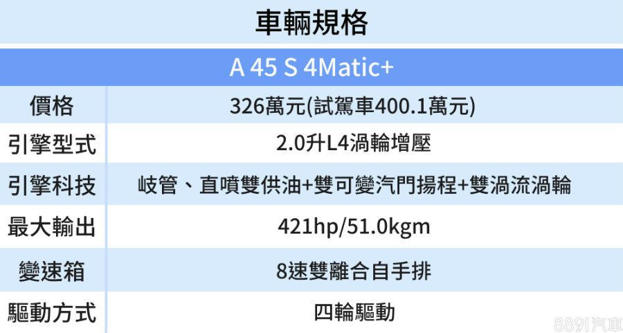 因此就性能表現的角度而言,A 45 S 4Matic+肯定是個狠角色,至於實用性則比照一般A-Class,收起狂野的一面來代步也OK,唯二會讓人在意的,若要比照試駕車的跋扈外型,選配又是一筆額外代價,再來就是因為環保法規的緣故,總覺得排氣聲浪顯得低調了些,畢竟這車的實力堅強,氣勢也得跟上才行!