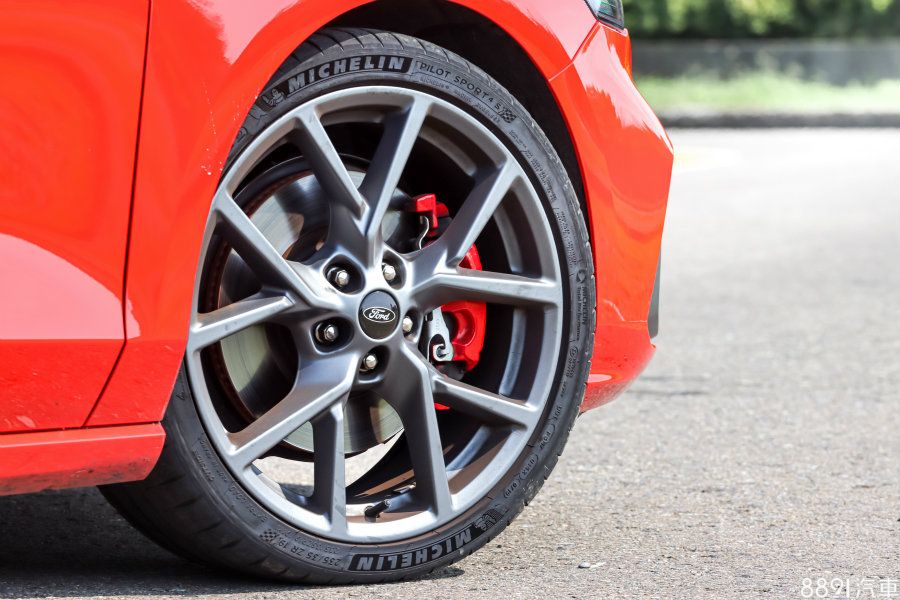 胎圈、煞車配置與掀背ST相同,配胎為235/35R19的米其林PS4S高性能跑胎,主打抓地表現,實際上路胎噪與舒適表現也不差;煞車碟盤則採前330mm、後302mm規格,卡鉗也採用紅色塗裝,不論性能或視覺表現皆到位!