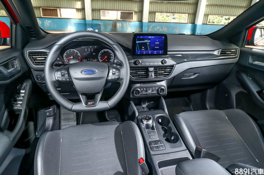 Focus ST Wagon中控台幾乎與國產版ST-Line如出一轍,類碳纖維飾版、旋鈕式排檔座甚至各項內裝按鍵在用料與質感上都相當雷同,僅有方向盤採用ST式樣,平底設計並在6點鐘位置加入ST性能徽章。除此之外,福特六和針對新年式ST / ST Wagon導入12.3吋數位儀錶,在配備層面賦予ST車型獨特性,不過本次試駕車輛為舊年式、依然配置指針儀錶。