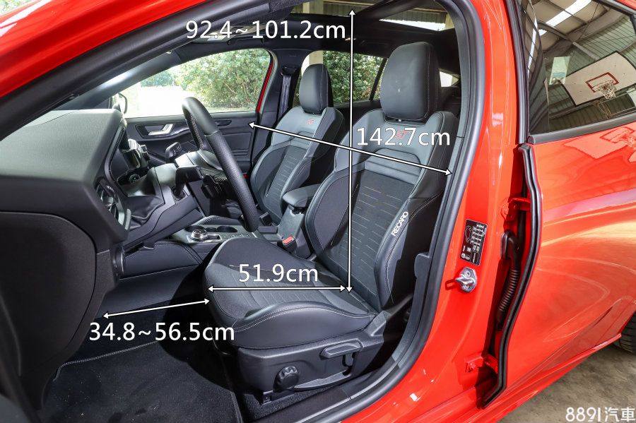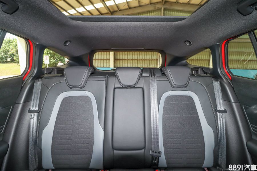 兩張Recaro賽車椅、黑色頂篷配置,氛圍符合性能車印象,但在空間表現上可不打折,雙前座頭部空間、橫向寬度數據表現優異,體感上也屬開闊,至於椅面長度雖然不能調整,但大腿支撐性已足夠。