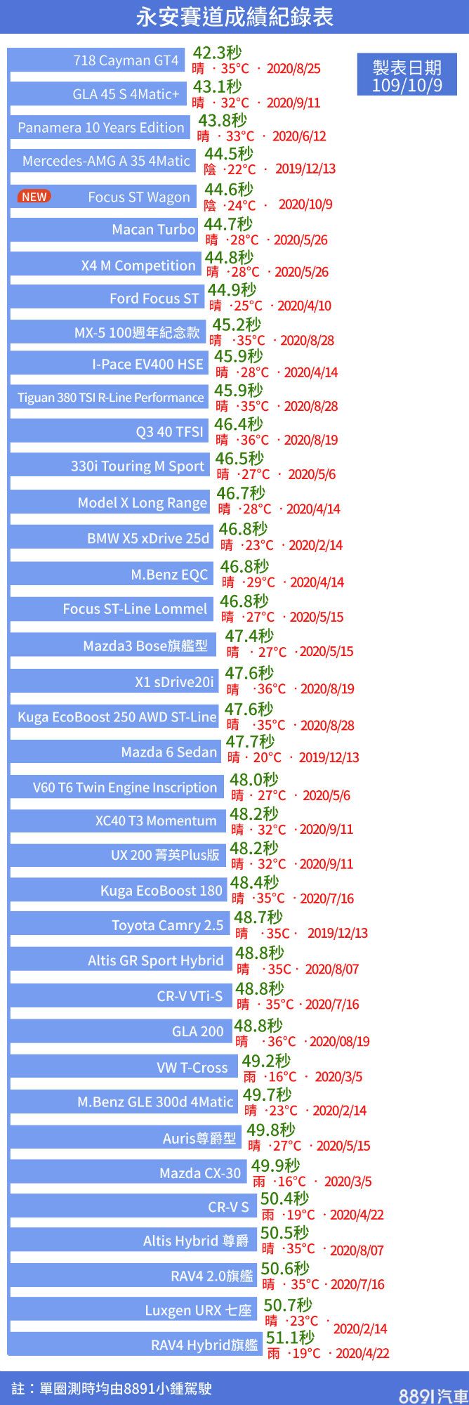 至於多出一截尾廂,讓車尾變得較為穩定(也許跟避震器設定也有關),不像掀背版那麼「溜」,但並沒到「不靈活」程度,依舊可以很流暢的進出刁鑽彎道,以一部Wagon來說,有如此表現確實厲害!而穩定的車尾,讓人可以更放心的挑戰極限,最後跑出44.6秒出色成績,比Focus ST歷史數據還快0.3秒,雖然天候、輪胎狀況不同,但著實展現ST Wagon雖然多了一截屁股,但調教火候出色,實測結果得知,並沒有犧牲性能實力!