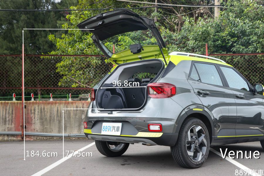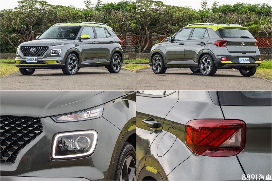 Venue GLC將雙色套件列為標配,原廠將照片中車色命名為「都會灰/黃」,實際上亮色部分較偏向螢光綠,看起來挺亮眼的,方正外型亦有別於對手流線設計,開在路上確實有型又吸睛。分離式頭燈是近期Hyundai設計語彙,LED日行燈辨識度高,不過與LED尾燈同為頂規車型專屬配置,且全車系均採用鹵素頭燈光源,配置少了點誠意。
