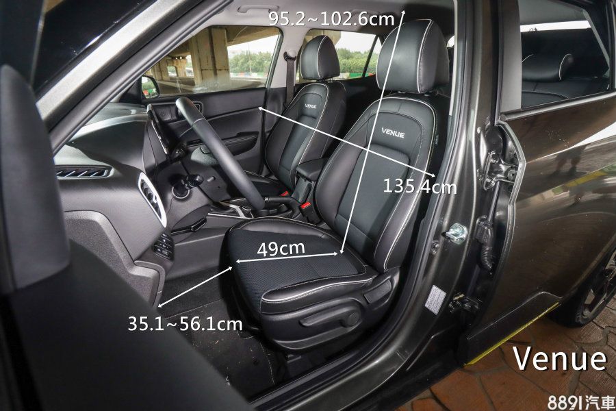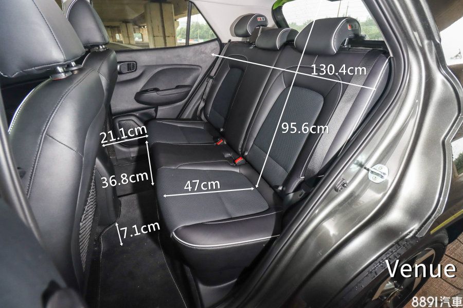 Venue前座椅型設計較窄,包覆性比兩輛對手要好,且泡棉設定較為硬挺,對於腰部、大腿支撐性都顯得充裕,長途駕駛較不會疲累。後座方面椅背角度適當,頭部空間也相當充裕,短途乘坐舒適性理想,長途因為膝部空間稍顯侷促,若想變換坐姿坐得「躺一些」就沒辦法了。
