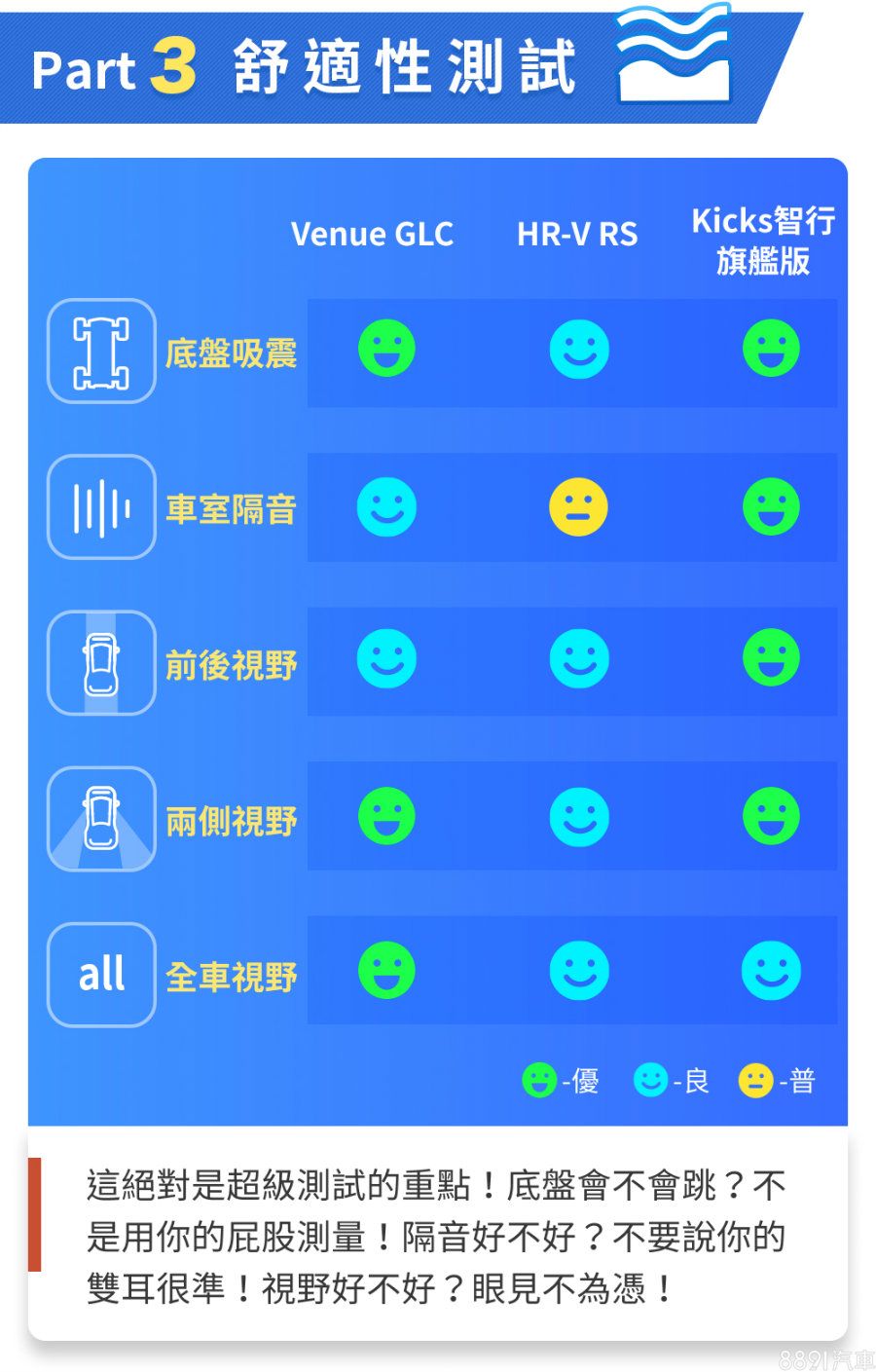 70~80萬級距的國產小型休旅級距幾乎由Kicks和HR-V雙雄割據,兩款車每月都分別有1000輛、500輛左右的穩定銷量,可見市場對休旅產品的需求持續看好,因此作為挑戰者Venue自然有備而來,整體價格帶低於兩位對手,但規格不落人後,透過超級測試全面性比較,有沒有料、測了就知道!