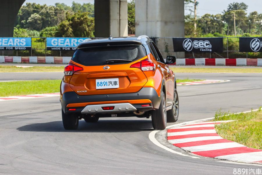 吸震性優秀的懸吊,在賽道上並沒有產生不受控、異常搖晃的情形,值得嘉許,輪胎展現的抓地力也算適切,但上述的特性,讓人可以很清楚知道,Kicks絕對不是強調運動性的產品,雖然你可以「硬來」逼出它的極限,但過程平淡無奇,最佳單圈為50.5秒。