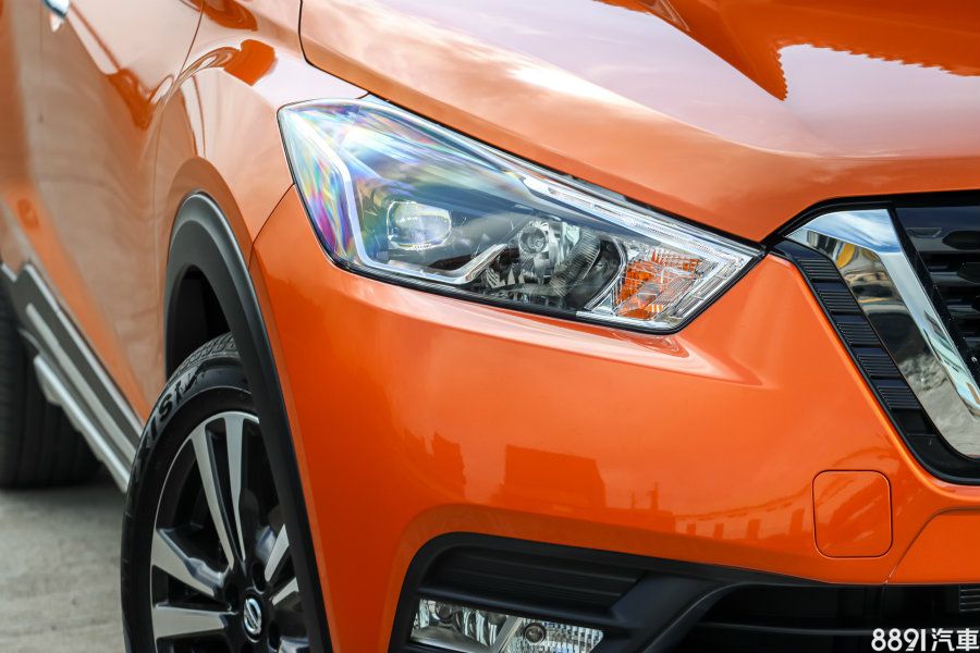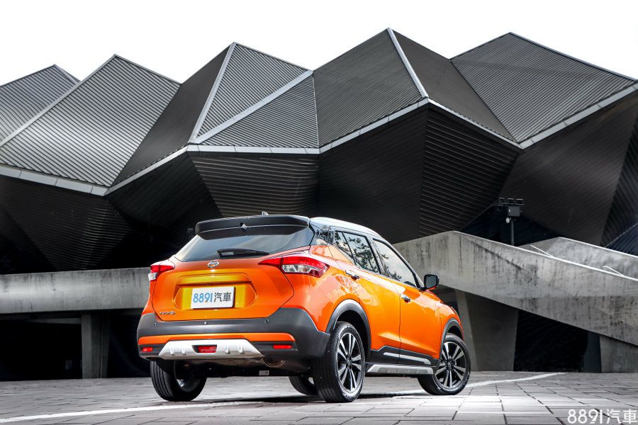 Nissan Kicks 以迴旋標型的主動式LED魚眼頭燈設計,搭配專屬的ID運動套件(下擾流銀色護板),以及四周輪拱防刮材質,讓粗曠休旅味又更濃一些,整體來說外觀是帥勁有型,採用懸浮式車頂設計是Nissan Kicks外觀一大看點,加上活潑多樣的車色搭配,共有12色可選,私心覺得紅色黑頂、白色橘頂也很好看,在車陣中夠亮眼!