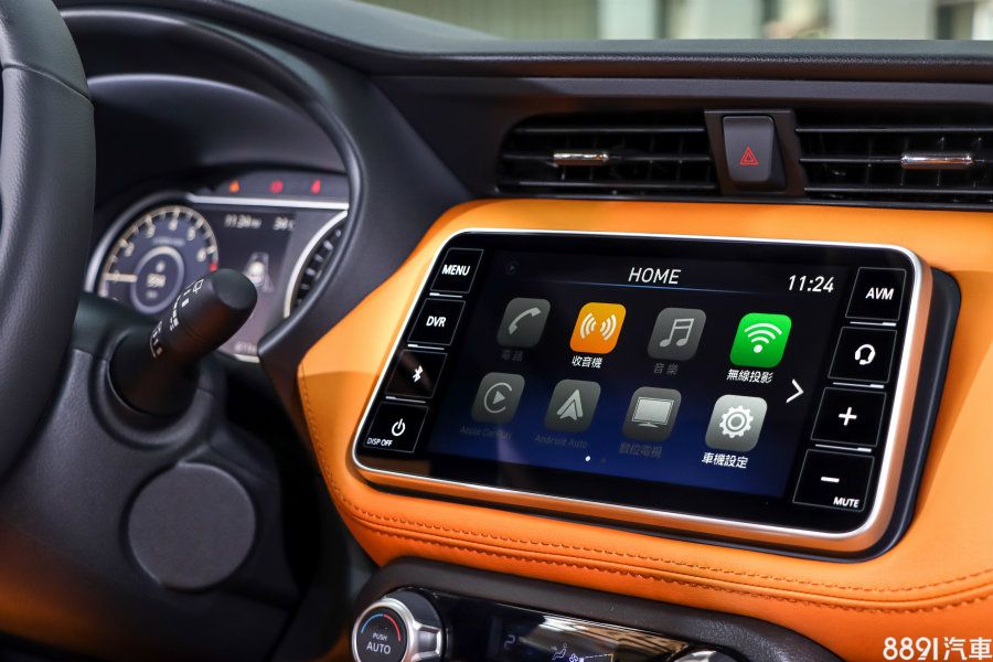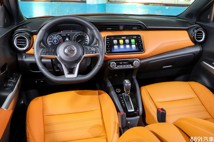 從內裝上來看,Nissan Kicks的精緻度更加提升,配色部分大膽活潑,車室空間感頗為開闊,中控台造型平整,搭配8吋的X-MEDIA III 影音主機,標配Apple Carplay 和Android Auto,更方便提供導航影音等服務,至於駕駛視野則接近休旅車,看出去比一般房車更遼闊,加上小型跨界體格,讓駕駛有更好車輛掌握度。