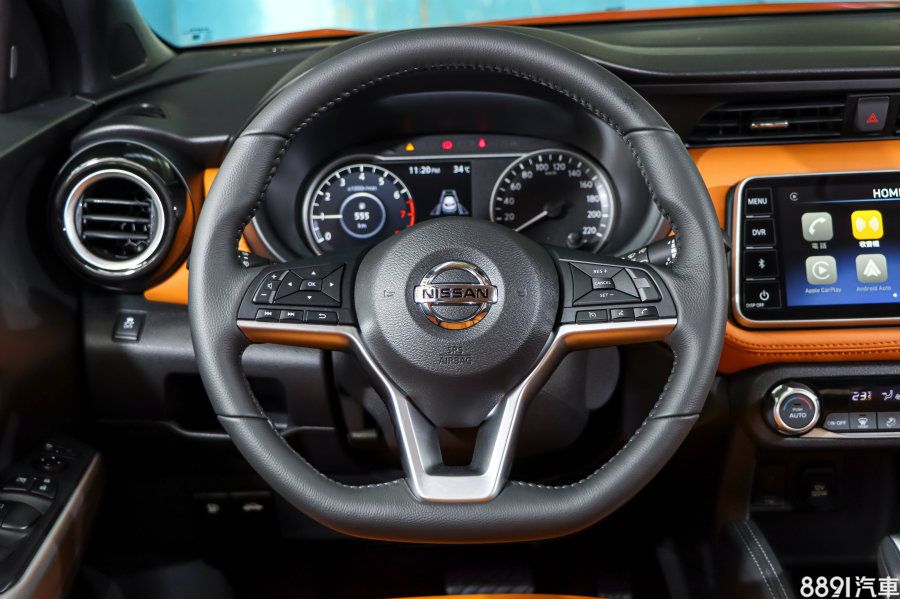 Kicks採用皮革質感平底式方向盤,粗細適中、握感紮實,下緣採用平把式設計,中央的七吋數位儀錶,除了能夠顯示轉速外,也能秀出即時油耗、3A底盤科技運作、四輪獨立胎壓、主動安全系統作動範圍等多重資訊,顯示畫質相當不錯且流暢,這部分也能為駕駛質感加分!
