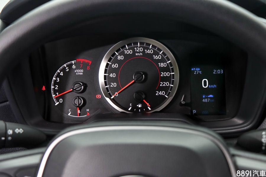 Corolla Cross得買到汽油頂規(85.5萬)才配有七吋數位儀錶,入門為傳統指針形式,右邊可顯示安全系統設定、車輛資訊等。