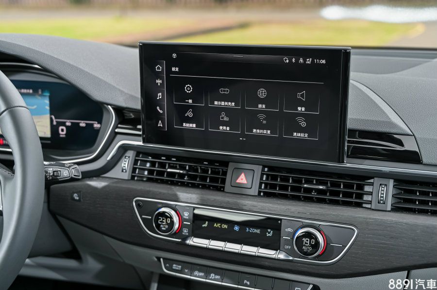10.1吋MMI Plus主機風格極簡,介面設計簡單明瞭,且以黑白高反差色調為主,在開車時不會眼花撩亂,而少了MMI旋鈕改用全觸控操作方式,反而能更直覺快速使用各項功能,至於時下流行的Apple CarPlay、Android Auto當然有支援,同時自帶聯網功能,可即時查看氣候資訊、通知等,讓Audi Connect功能更加完善。